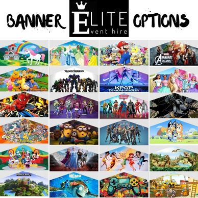 All banners pictured here suit both the Big Slide Banner Castle & Front Slide Banner Castle, we provide the banner with your castle at no extra charge!